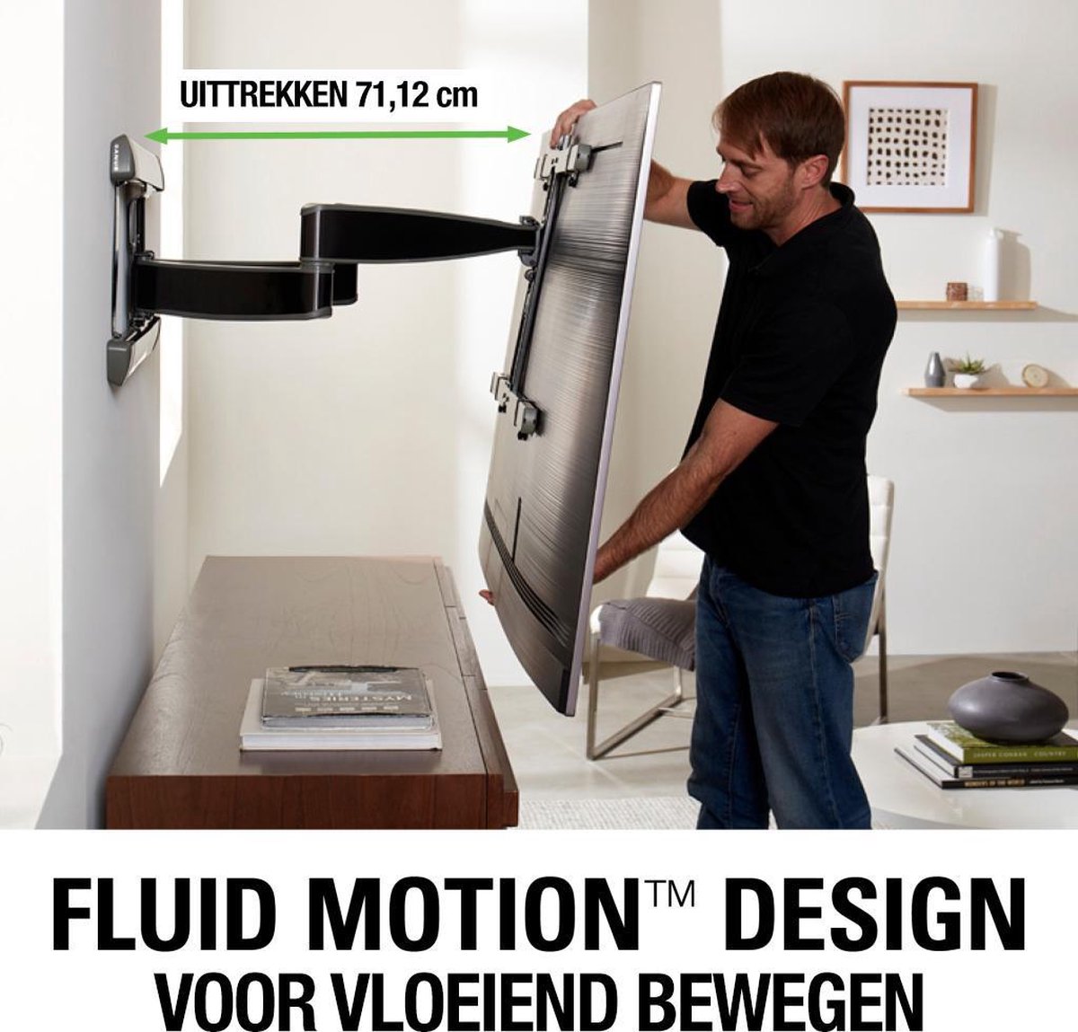 - Full motion: tilt, swivel, extend up to 71 cm