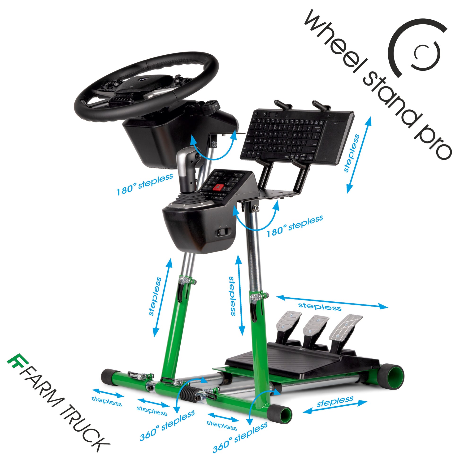 Le Wheel Stand Pro Farm Truck – Black est un support de volant robuste et entièrement réglable, spécialement conçu pour les simulateurs de camion, d’agriculture et de conduite lourde. Sa structure renforcée en acier offre une stabilité exceptionnelle, même avec des volants et pédales lourds.